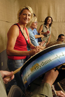 MT-BC, of HealthRhythms™. It begins with innate biological rhythms and extends to personal and group expression in the form of empowerment drumming.